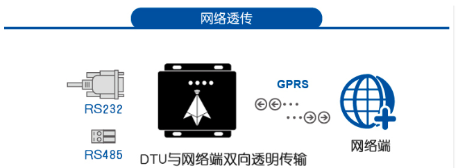 支持網絡透傳——即透明傳輸,4G DTU接收什么就發送什么,快速連接串口設備和網絡服務器,將串口數據快速轉成4G傳輸。